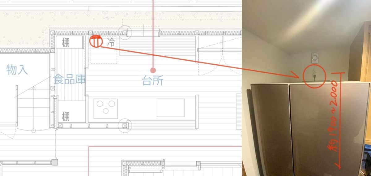 冷蔵庫用コンセントの位置。Jessieのごちゃまぜ。