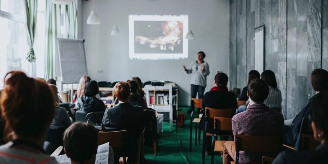講習会・プレゼンテーションのシルエット無料のAi・PNG白黒シルエットイラスト。