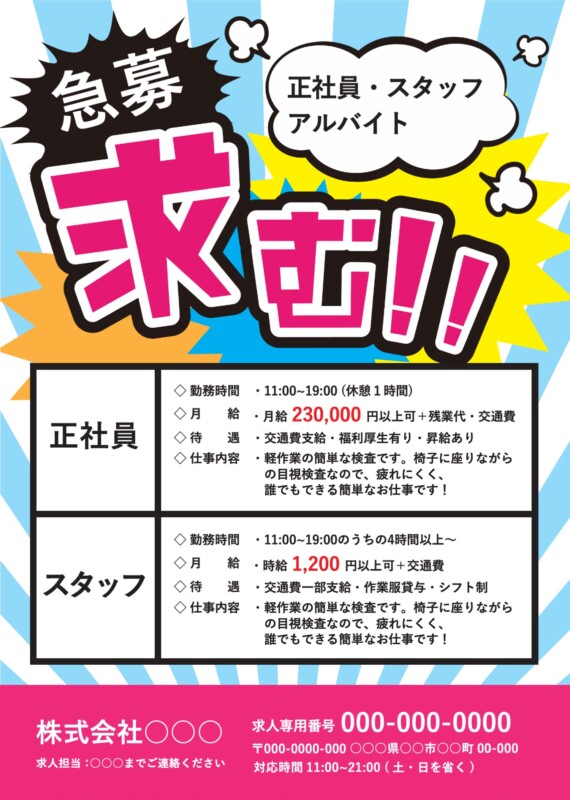 アルバイト募集のチラシ目立つデザインの無料テンプレート - 登録不要のフリーテンプレート。
