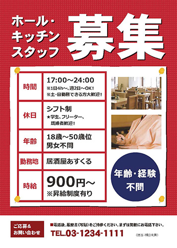 アルバイト・スタッフ募集のチラシ作成のコツ 興味を持たれる求人情報とは? - ラクスルマガジン。
