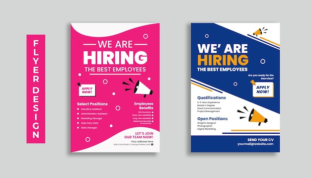 募集チラシデザイン、求人広告チラシデザインテンプレート、求人チラシポスターPremiumベクトル素材。