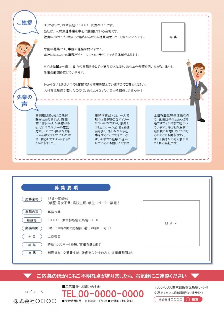 チラシのデザインテンプレート -求人募集チラシ 作成&配布パック。