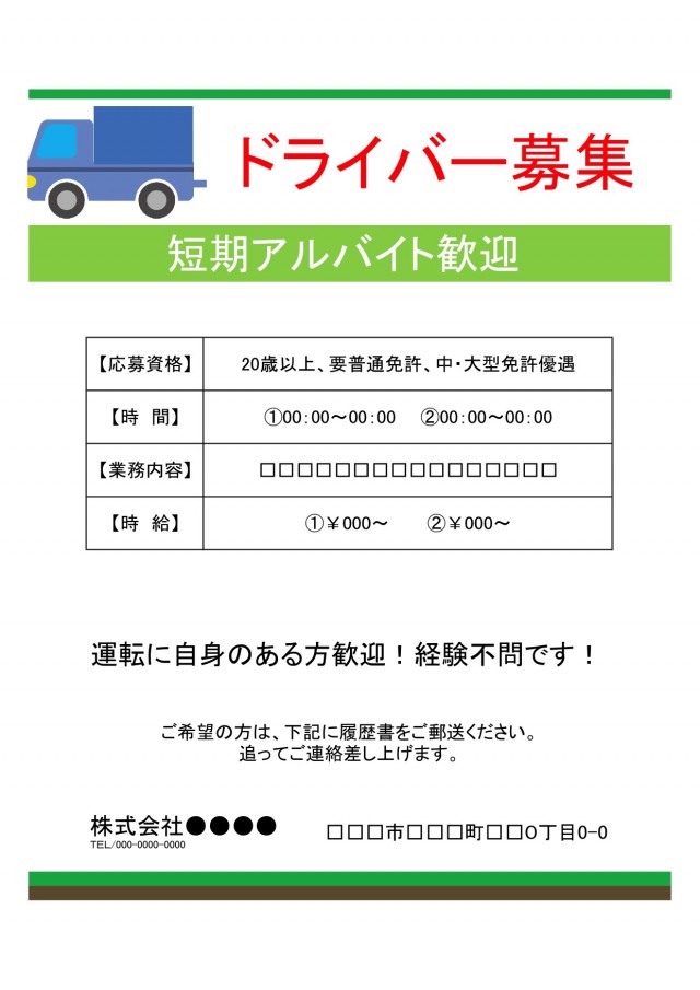ドライバー募集無料の雛形・書式・テンプレート・書き方ひな形の知りたい。