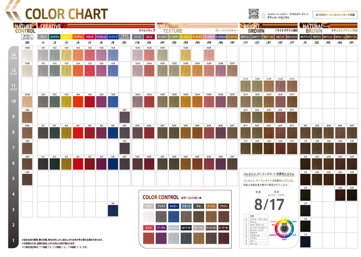 コレストン プラス カラーチャート ヘアカラー ウエラ。