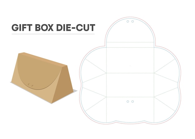 ギフト ボックス ダイカット アイデア 3 d 図面モックアップとダイカット編集可能なライン テンプレートとブリード ベクトル ファイルPremiumベクトル素材。