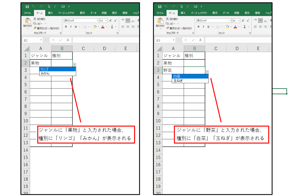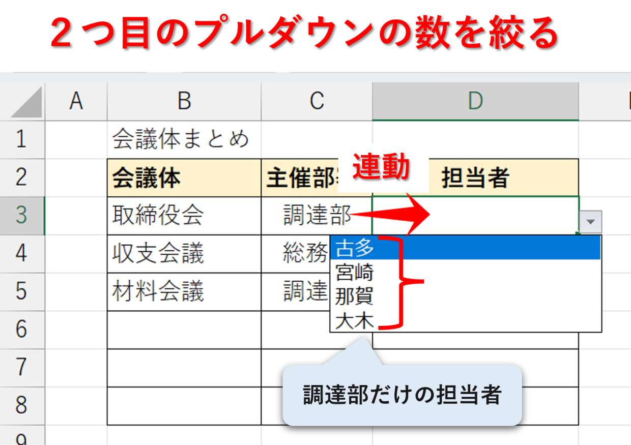 ドロップダウンリストを2段階選択で絞り込むには データの入力規則Excel 2016初心者のためのOffice講座。