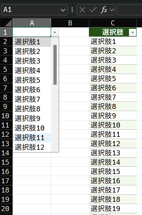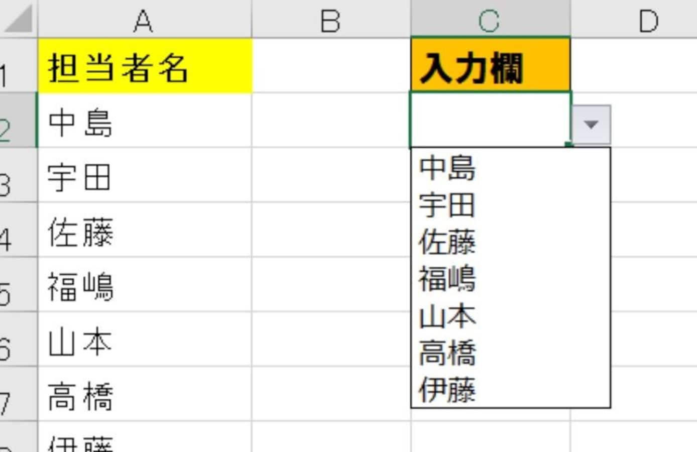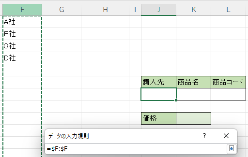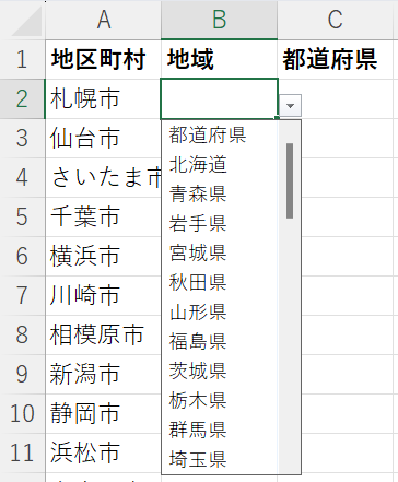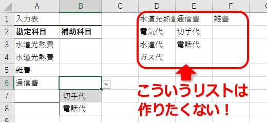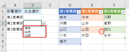 Excel一般機能:ドロップダウンリストを連動させる1。