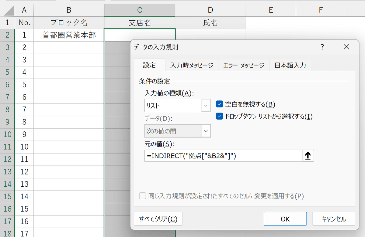 Excel 2段階ドロップダウンリストの設定 - 風と雲とExcelと。