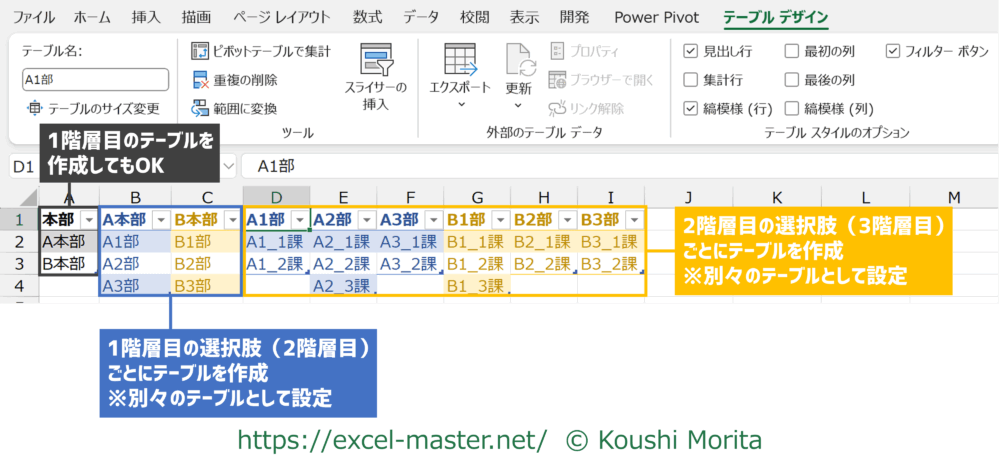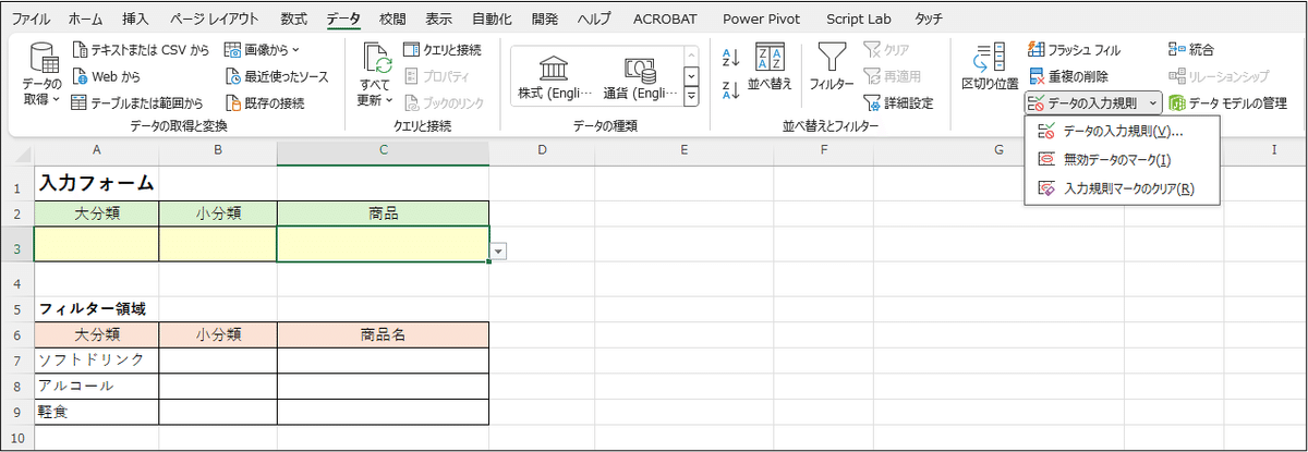 データの入力規則 ドロップダウンリストを2~3段階の階層構造にできる「テーブル」・「INDIRECT」との組み合わせテクニックExcel を制する者は人生を制す。