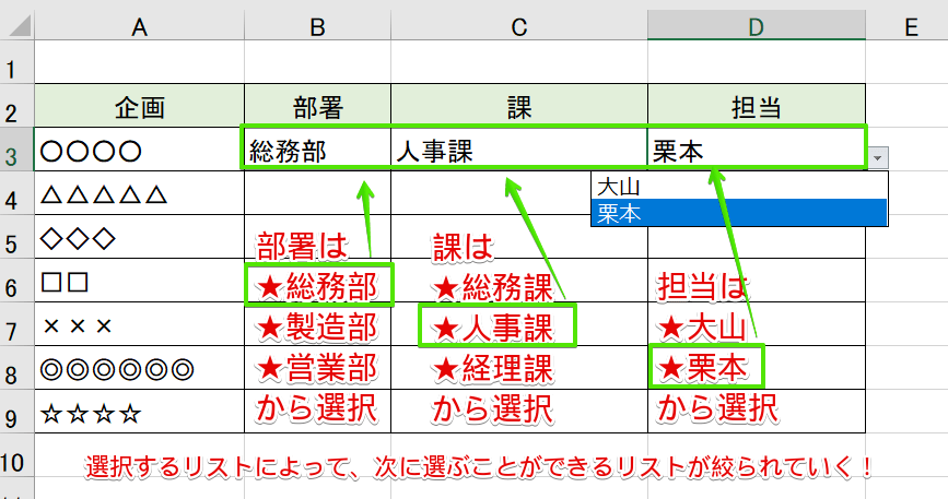 Excel・エクセル プルダウンメニューを連動して選択肢を絞り込み!もりのくまのサクサクOffice。