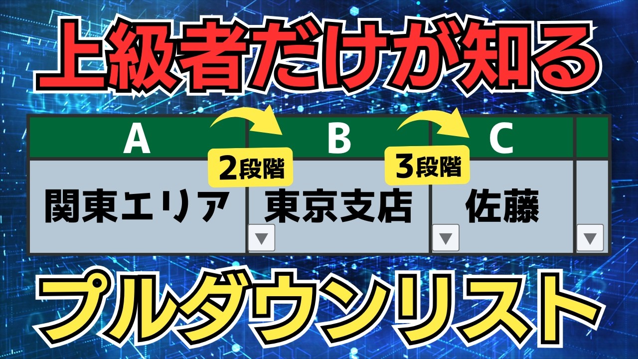 スピルを使った3段階プルダウンリストを作成YouTubeパソコンスキルUP講座。