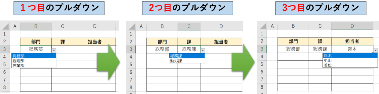 Excel 3段階プルダウン ドロップダウン の作成方法!3つを連動させる手順を紹介Excelの森。