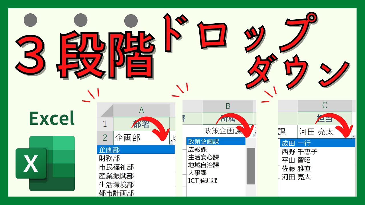 Excel講座 ★超便利★「2段階 3段階」ドロップダウンリストの作り方。