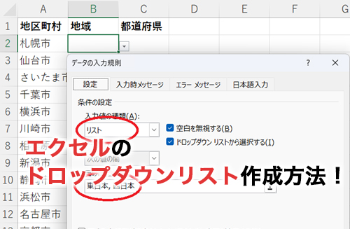 エクセルでプルダウンを設定・追加 自動反映 ・解除する Excelドロップダウンリスト。