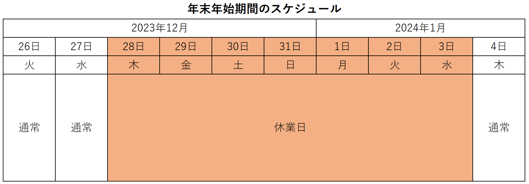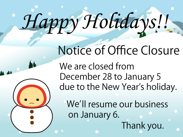 お知らせ 年末年始休業についてインバウンド&接客英語のあれこれ ㈱ライフブリッジ。