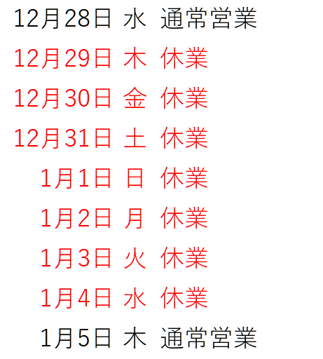 年末年始休業日のお知らせbizocean ビズオーシャン。