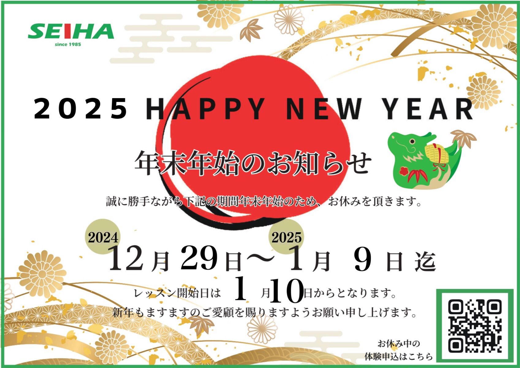 年末年始のお知らせ幼児、小学生、中学生向け子ども英会話教室「セイハ英語学院」。