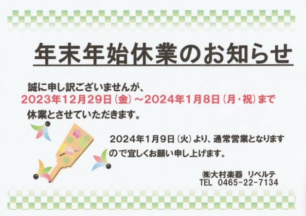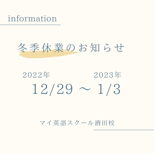 2023~2024 年末年始の休業のお知らせ三井英語教室。