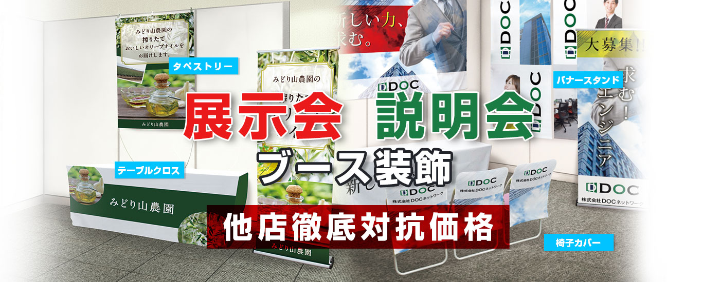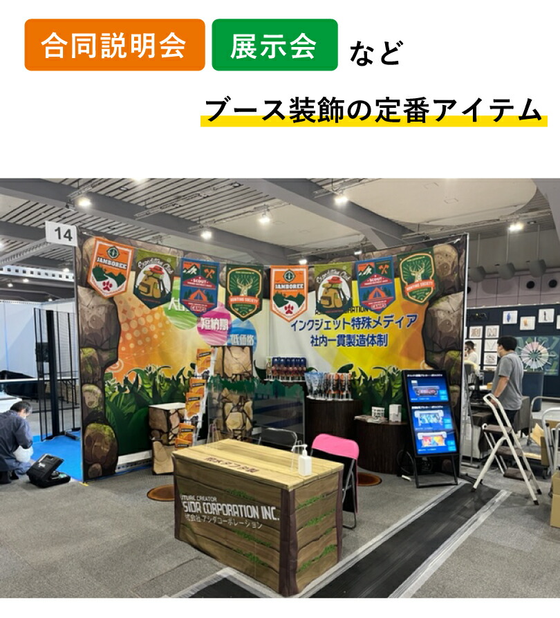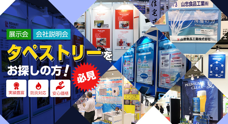 展示会や会社説明会のブース装飾用タペストリー旗・幕の卸。