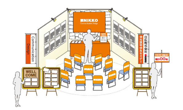合同説明会ブース装飾高訴求デザインのオリジナルツールを激安価格で印刷製作 SPの卸。