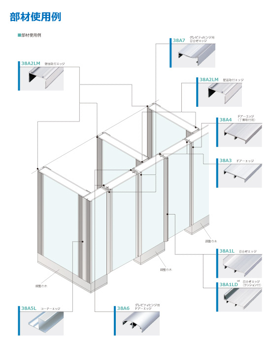 トイレブース アルミエッジ材 パネル厚38mm用 三山金属。