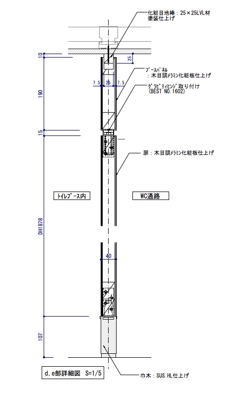 建具図_028 汎用性のあるトイレブース木製建具の作図事例図面屋.com 店舗設計詳細図「虎の巻」。