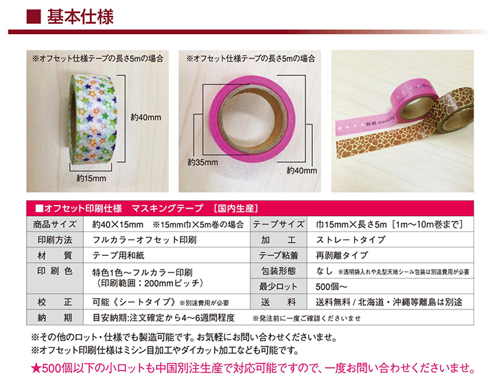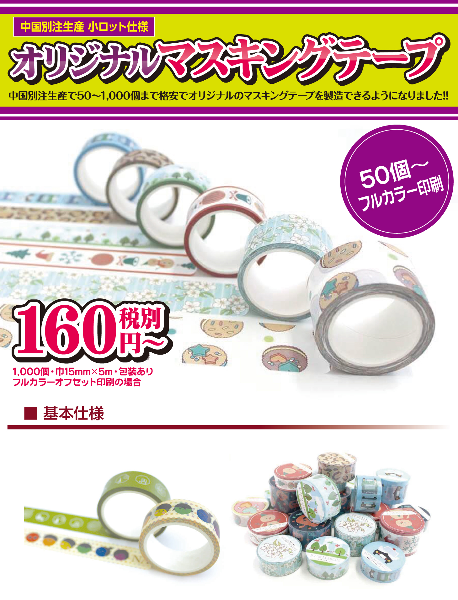マスキングテープ 15mm幅 印刷専用最安値291円 ノベルティ・記念品・オリジナルグッズの名入れ制作なら販促スタイル。