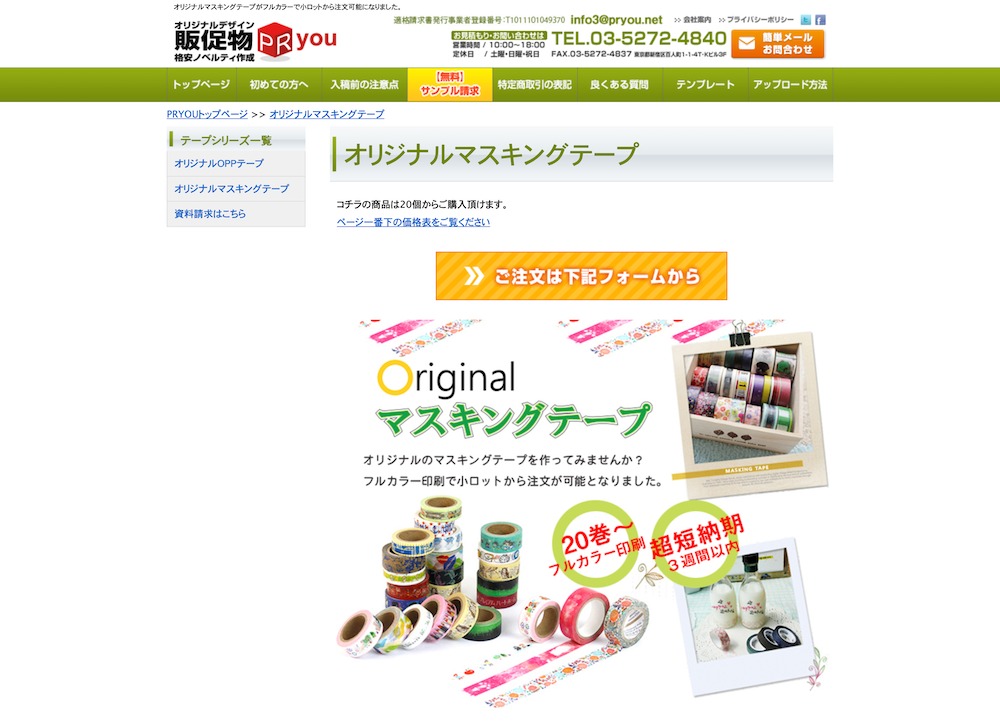 オリジナルマスキングテープマスキングテープならPRYOU。