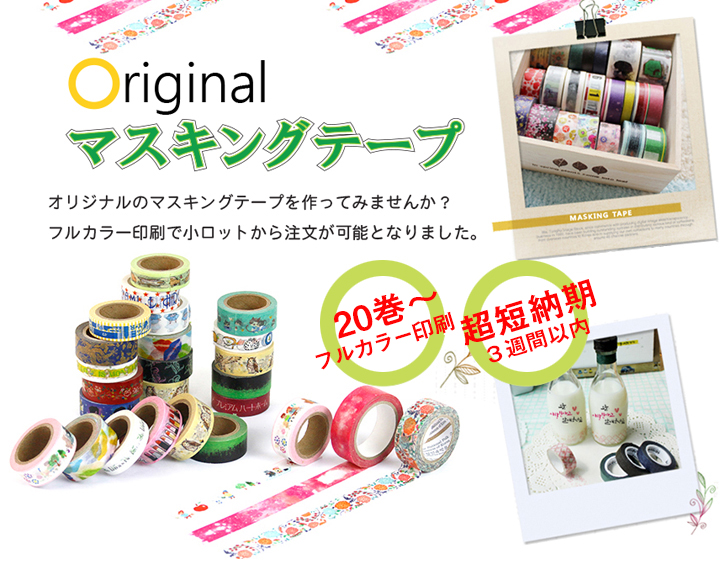 オリジナル マスキングテープ 20mm幅 印刷専用最安値308円 オリジナルグッズ・販売品製作なら オリジナルグッズプレス。