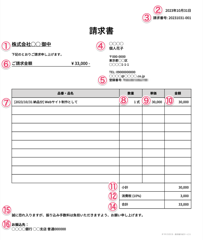 シンプルな適格請求書 インボイス対応 の無料エクセルテンプレート - Misoca ミソカ- 弥生株式会社 公式。