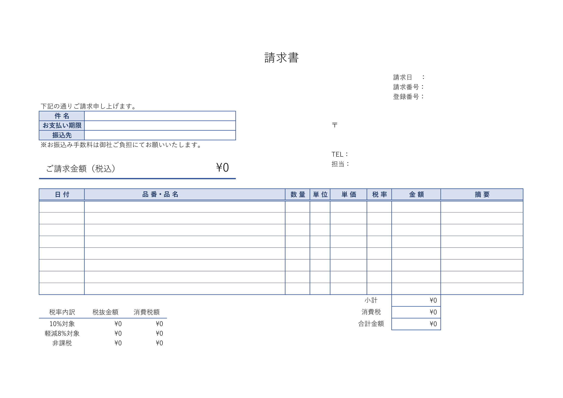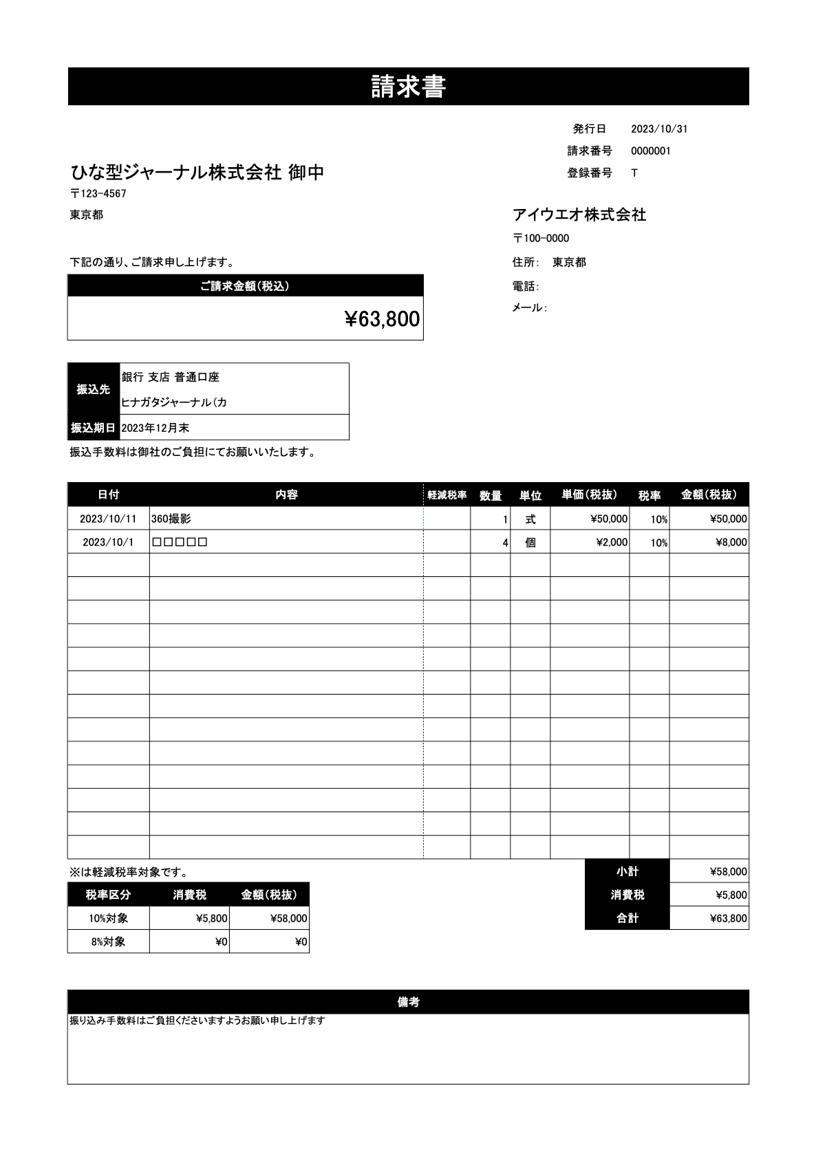 適格請求書発行可 HA-LFS601BK 無料PDFテンプレート——適格請求書。