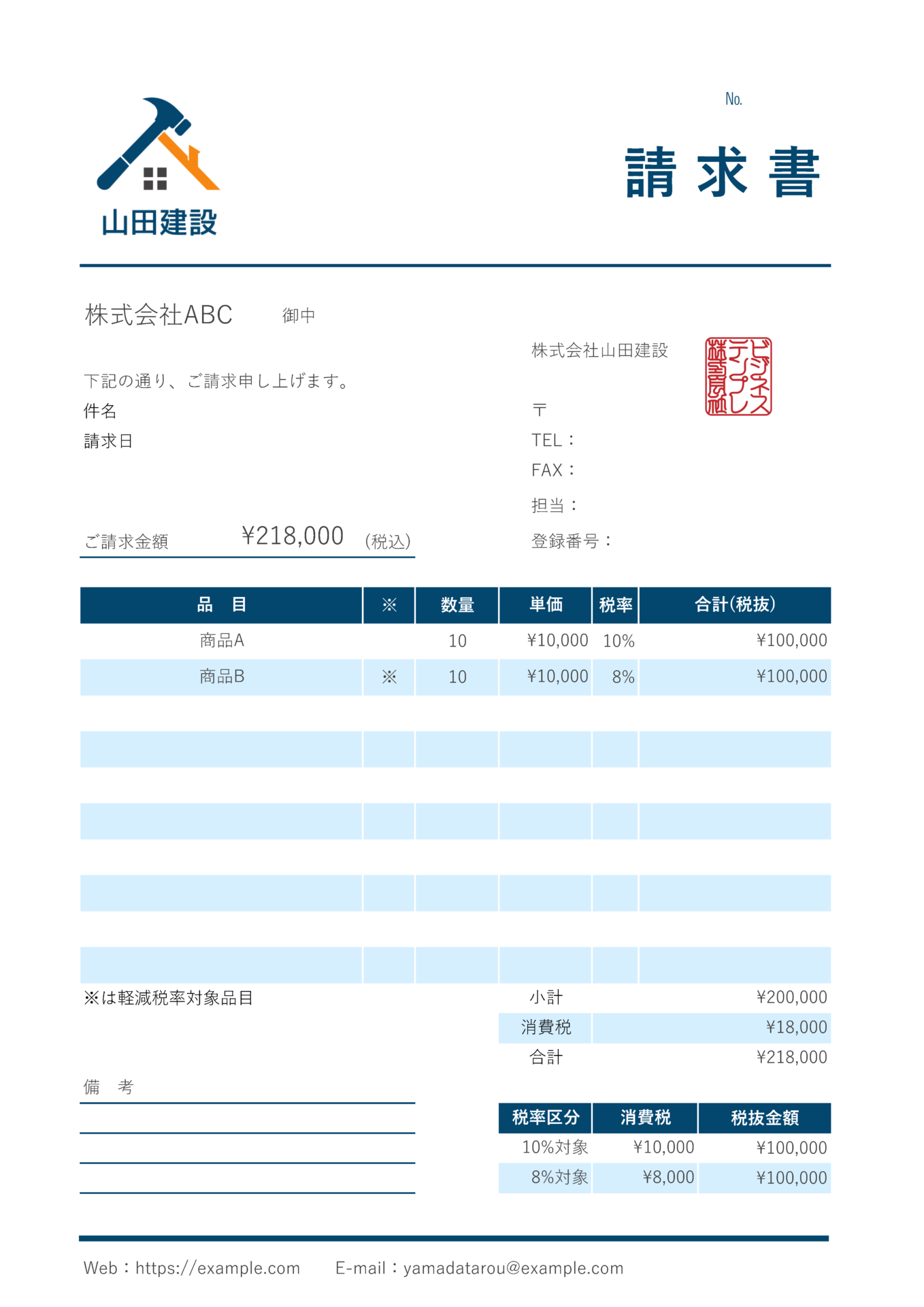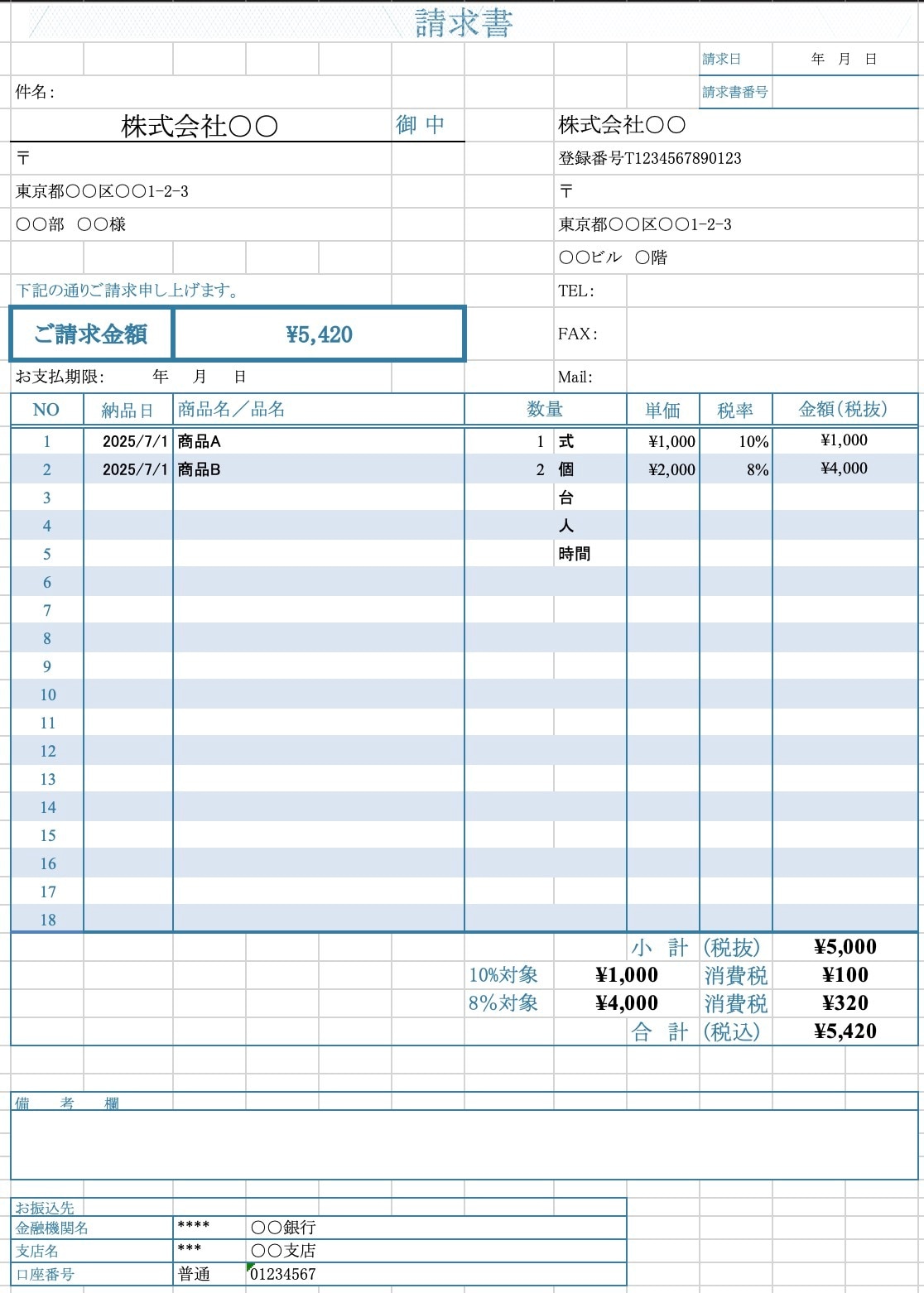 インボイス制度 適格請求書 対応 - 請求書エクセルテンプレート・サンプル 無料。