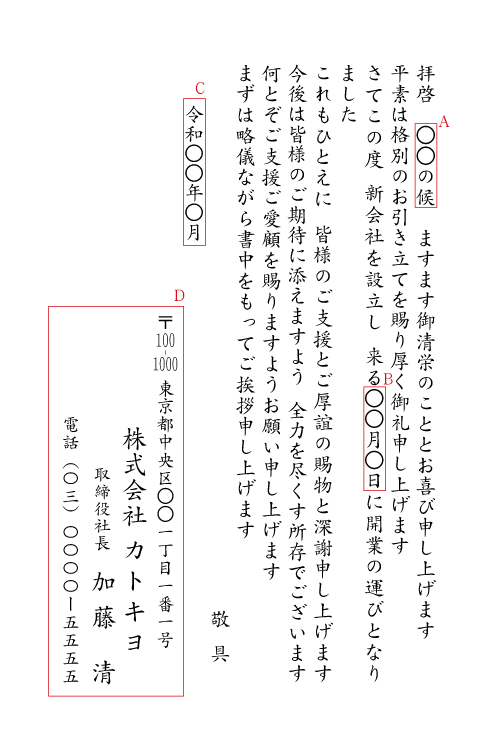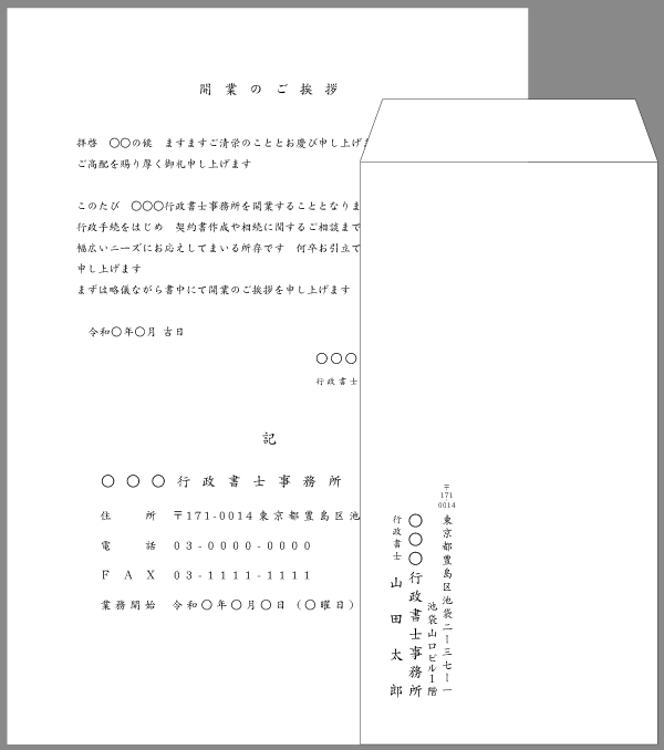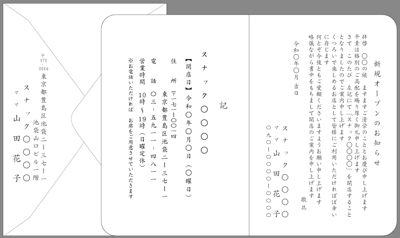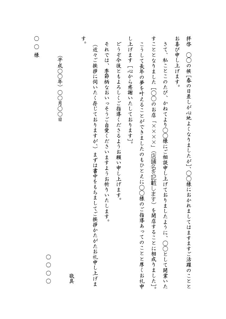 開店・開業・独立の通知、お知らせ、ご挨拶状の書き方と例文。