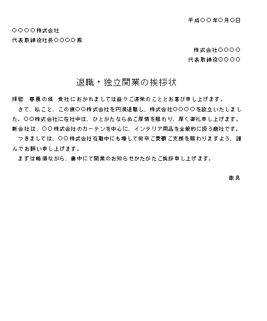 挨拶状 独立開業 の書式テンプレート Word・ワードテンプレート・フリーBiz。