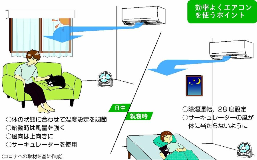 エアコンどっち? 睡眠時はつけっぱなし?切タイマー? 節電暑い時は風量強?1℃下げる? 節電風量は弱?自動? 節電風向きは水平?斜め下?福岡のニュースRKB NEWSRKB毎日放送2ページ。