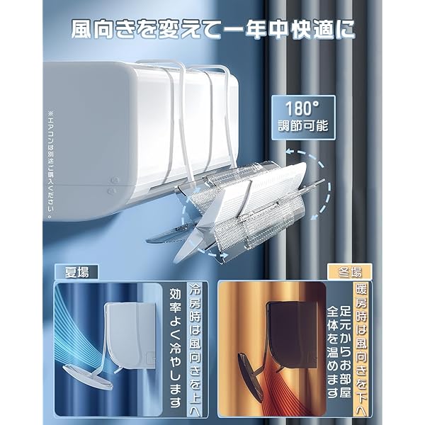 Amazon.co.jp: エアコン風除けカバー 直撃風防止 風向き180°角度調節 壁掛け式 エアコン 風よけ カバー 循環送風 60-90cm長さ調整可能 伸縮自在 クーラー 風よけカバー 穴あけ不要 簡単取り付け 落下防止 結露防止 直撃風対策 冷房 暖房 風向き調整板 エアーウィング。
