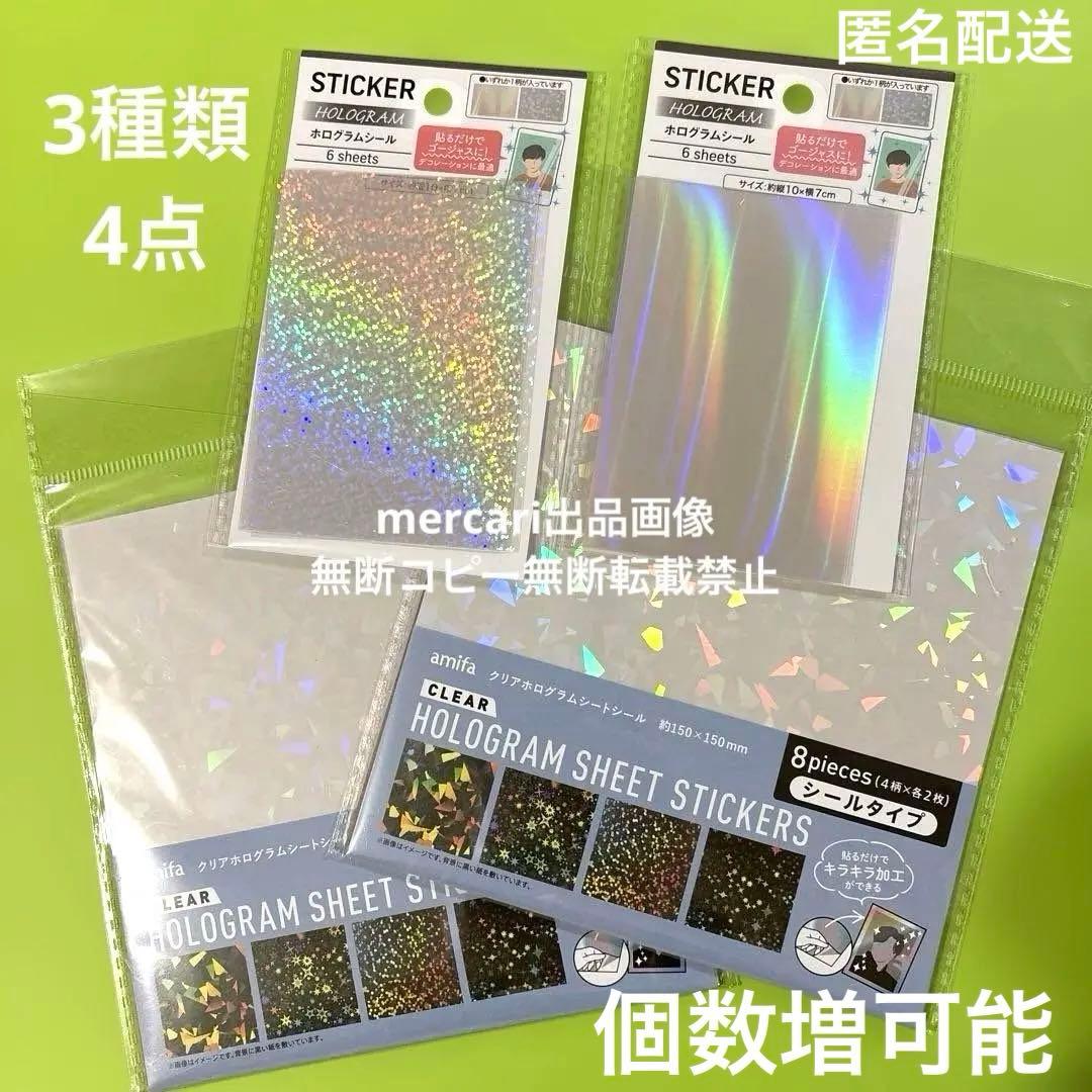 セリアシールクリアホログラムシートシール4点推し活キラキラ加工。