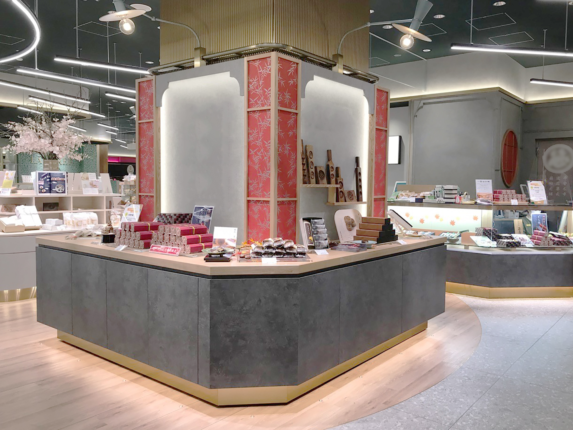 お土産陳列棚施工例照明器具のオーダーメイドならア・バンブー株式会社。