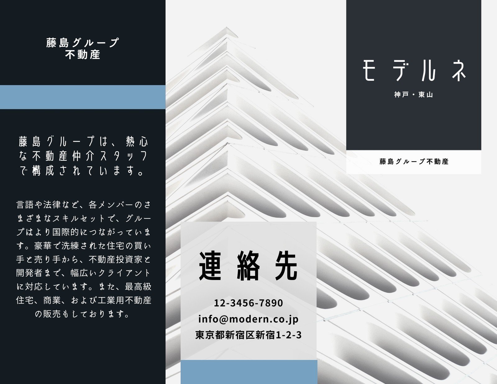 不動産パンフレットテンプレートでおしゃれな三つ折りチラシ・リーフレットデザインを無料で作成! Canva。