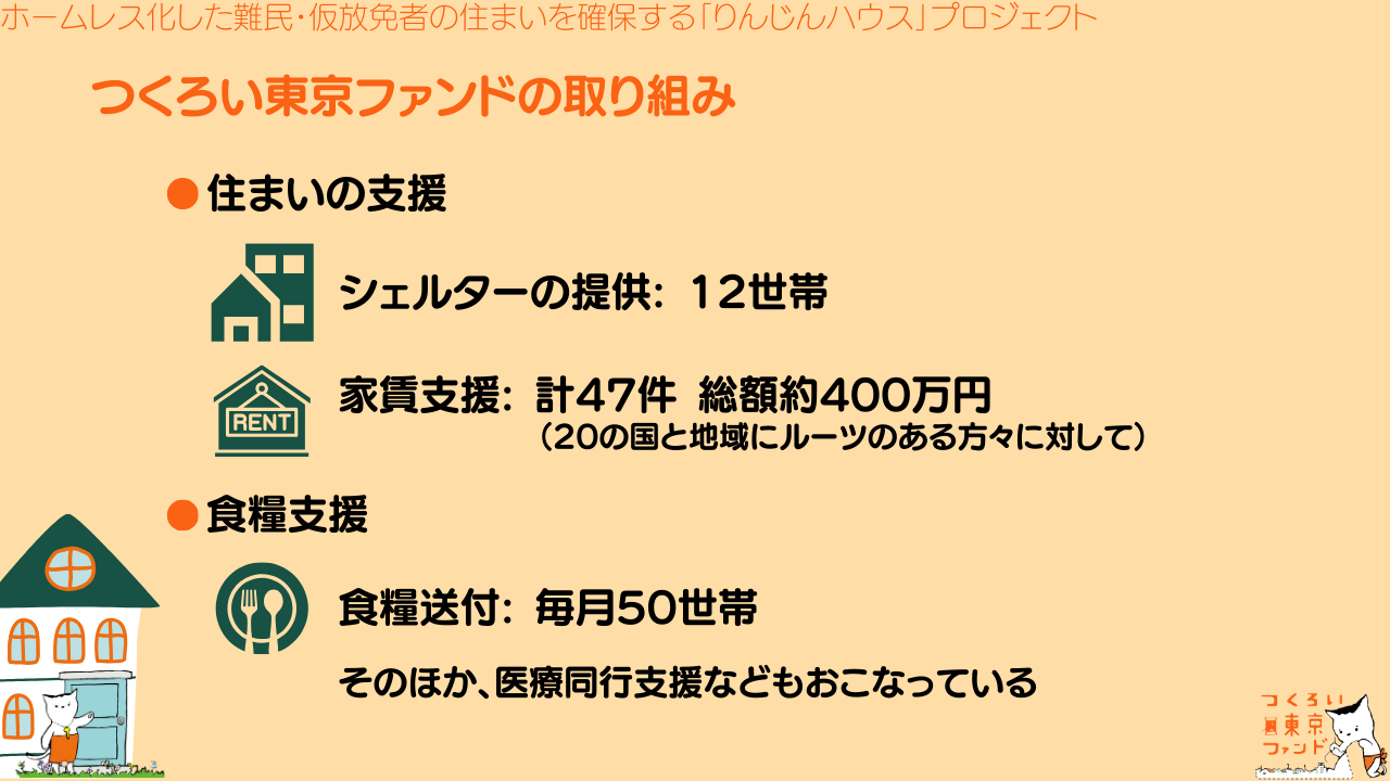 難民・仮放免者を「ホームレス」にさせない!「りんじんハウス」プロジェクトを支えてください一般社団法人つくろい東京ファンド。