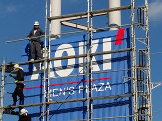 紳士服のAOKIで新しいロゴマークへの看板架け替え工事が始まりました!うちの街 都筑。