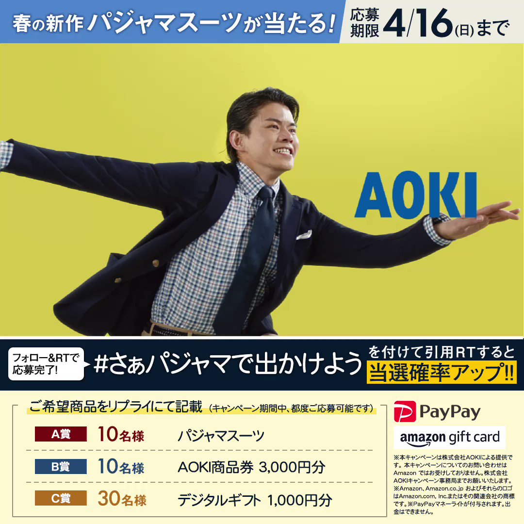 公式 AOKI on X: "スーツ屋の仕立てたTシャツが当たる🪡プレゼントキャンぺーン 📢 \「ジャケットに合わせやすい」と好評の仕立て屋Tシャツ&AOKI店舗で使える商品券3,000円分 orデジタルギフト1,000円分を抽選でプレゼント🎁 1⃣@Aoki_snsをフォロー 2⃣投稿を。