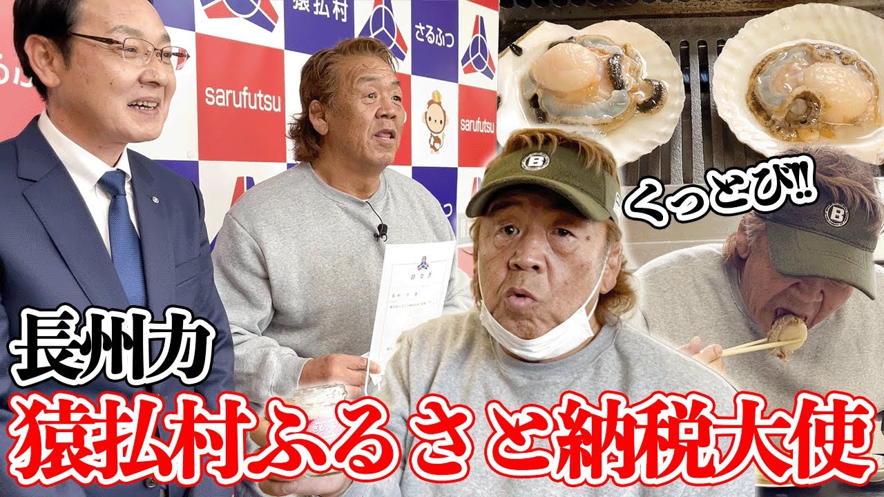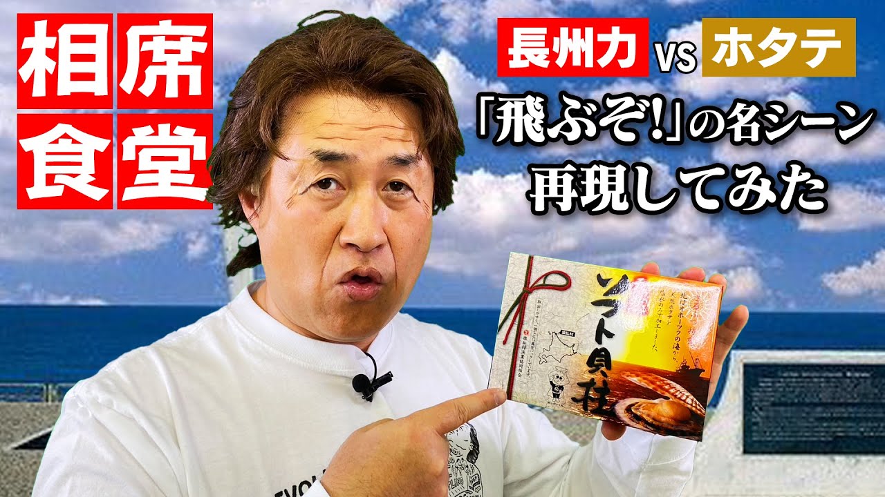 相席食堂 長州力の「飛ぶぞ!」が生まれた名シーンを猿払村のホタテで再現してみた 神奈月- YouTube。