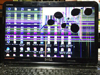 DELL ノートパソコン液晶交換「ヒビ・スジ・割れ」 格安横浜市 パソコン修理・トラブル出張 PCメディクス お助け迅速。