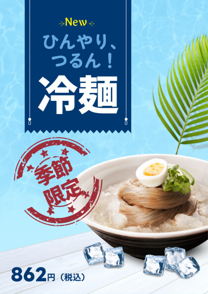 夏限定 お好みで選べる!韓国冷麺、大好評販売中!ケーソウザイショップトピックスグランベリーパーク。