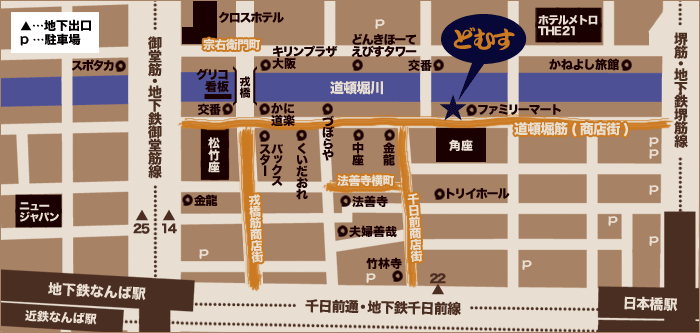 地下鉄なんば駅から道頓堀 戎橋 グリコサインへの行き方 マップと写真でわかりやすく案内御堂筋線 千日前線 四つ橋線なんば駅ガイド。