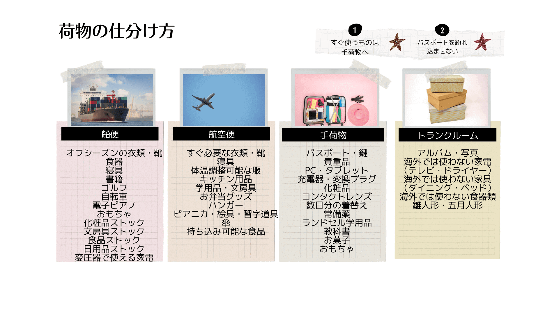 海外赴任の引っ越し仕分け~船便・航空便リスト公開~ - 海外赴任ガイド。