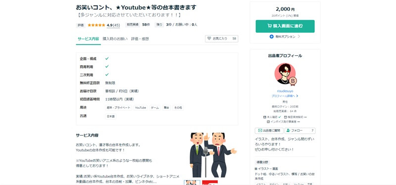 テレビ多数出演!現役お笑い芸人がネタを作ります 漫才、コント、歌ネタ、YouTube、TIKTOK対応可能ココナラ。