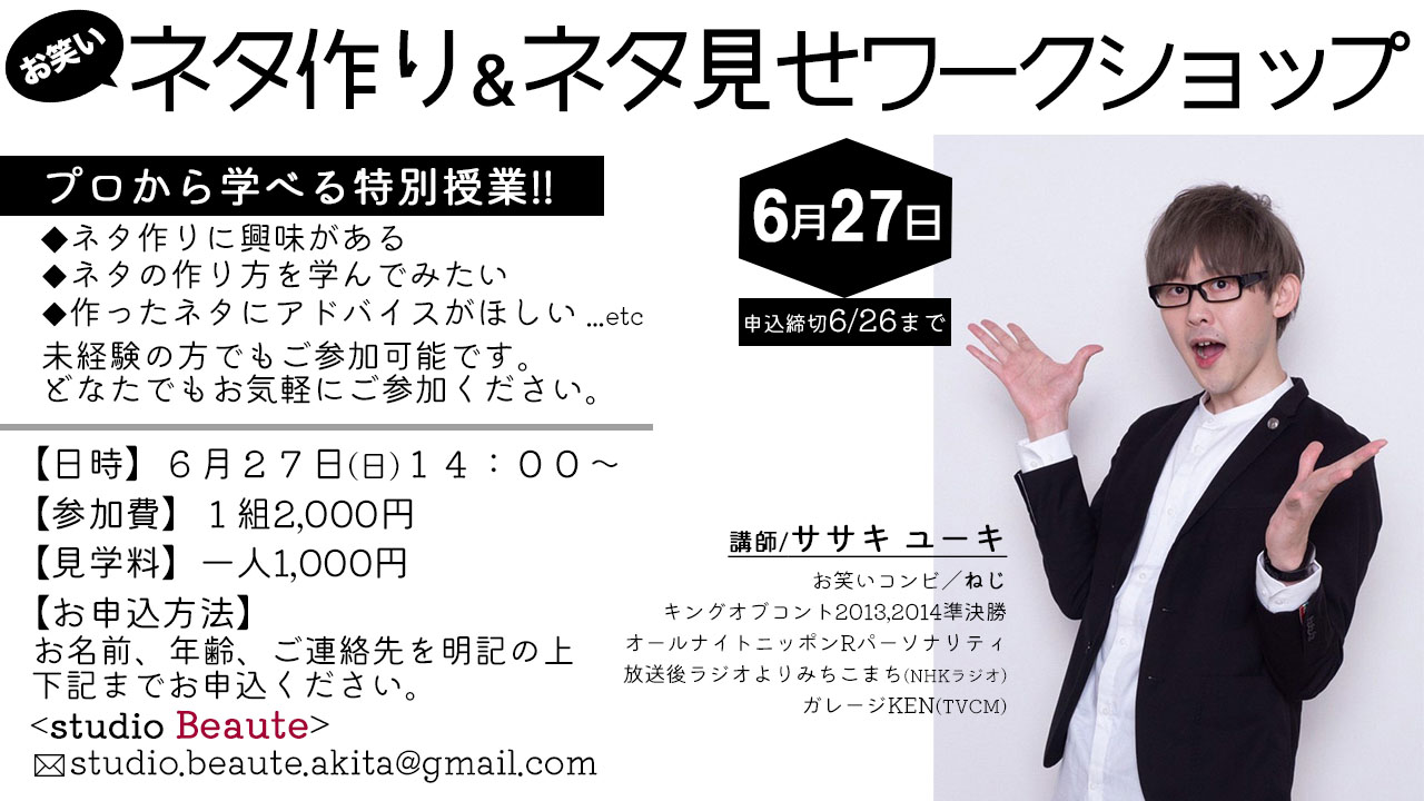株 ShowMe│秋田の芸能プロダクション » 2021 6 27 「お笑い☆ネタ作り&ネタ見せ」ワークショップ開催。