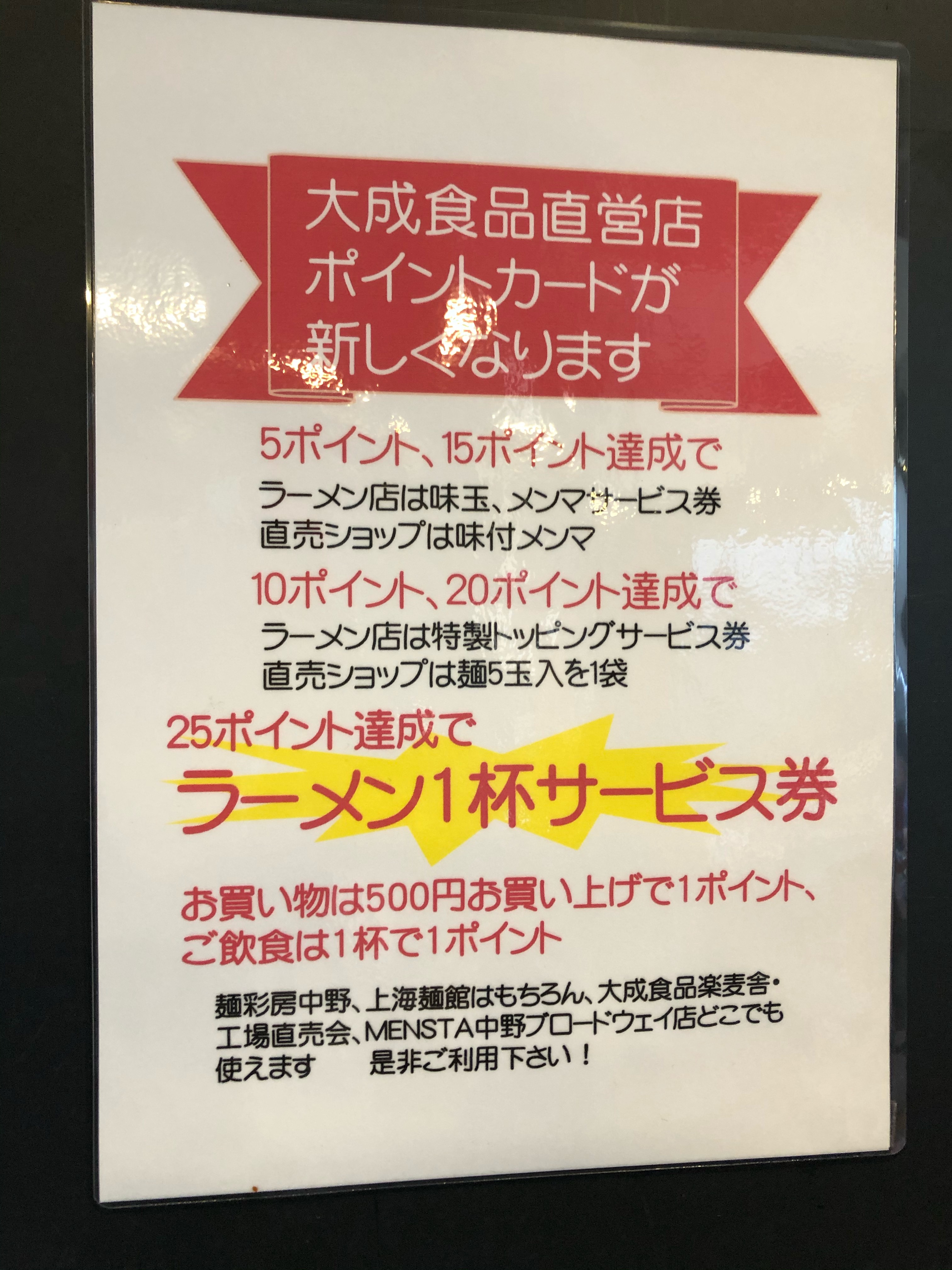 大成食品 株 ポイントカードの特典変更のご案内お役立ち情報百年麺工房 中野大成。